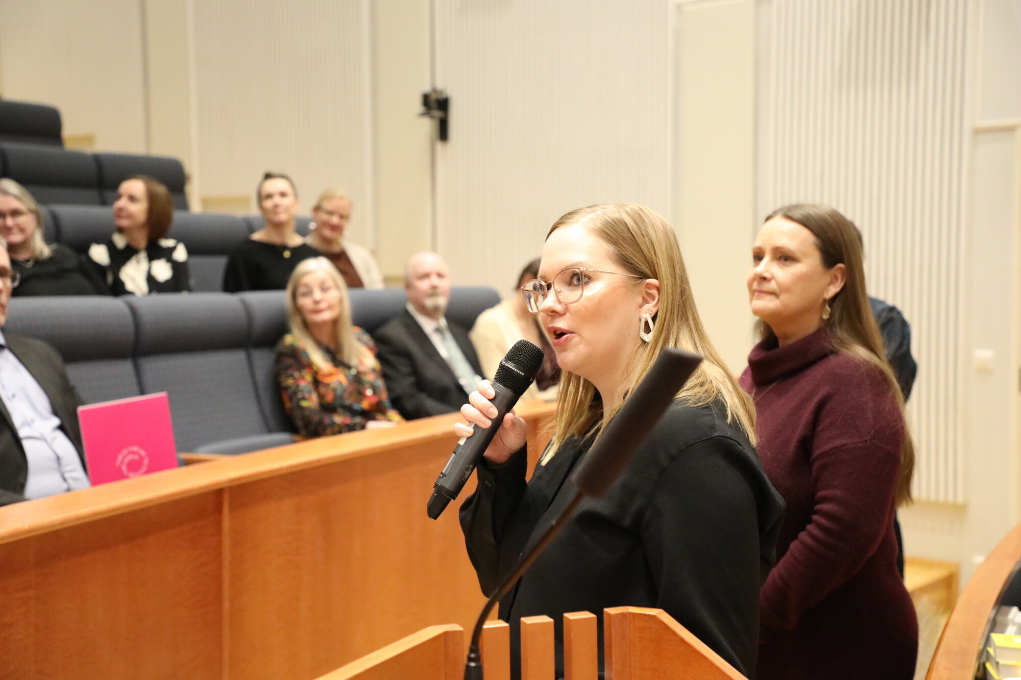 “Congratulations to us! This university of applied sciences would not exist without its students. Nor would Northern Savo, or Finland as a whole, look the same without university education. Perhaps the most famous quote by Minna Canth, a native of Kuopio, is: “Anything but a half-dead life,” which means the ability to learn new things and imagine what the future will look like, said Ida Mieletyinen, Executive Director of the Rectors’ Conference of Finnish Universities of Applied Sciences (Arene).