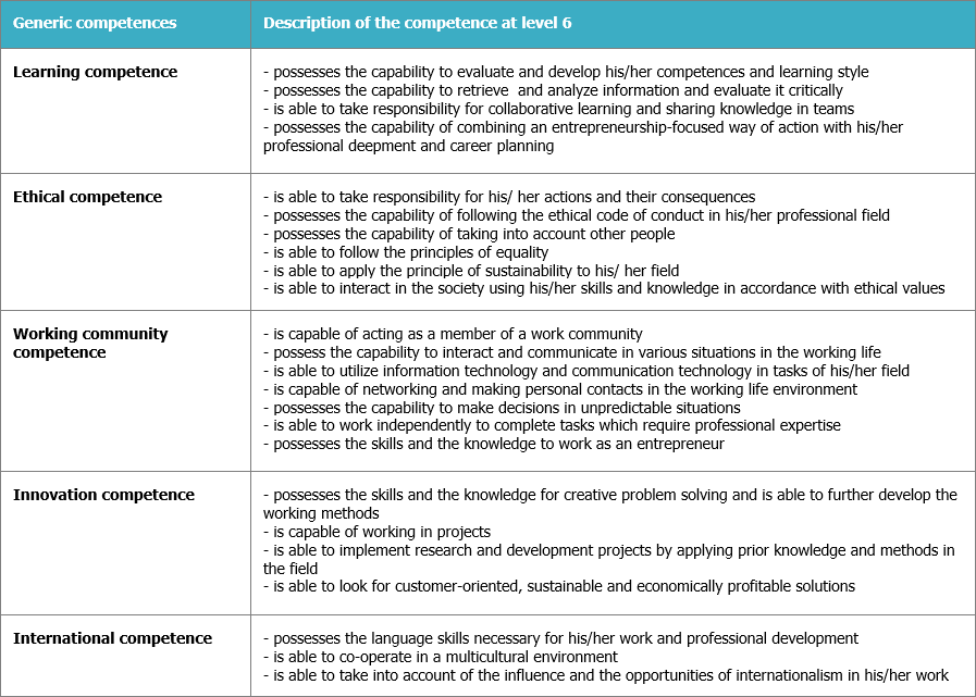 This curriculum is a translation of the curriculum of the Finnish degree program.
