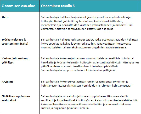 Sairaanhoitajan osaamisprofiili muodostuu yleisistä ja sairaanhoitajan ammattispesifeistä kompetensseista.