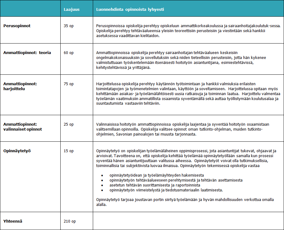 Sairaanhoitajan tutkinto-ohjelman opetussuunnitelma on laadittu niin, että