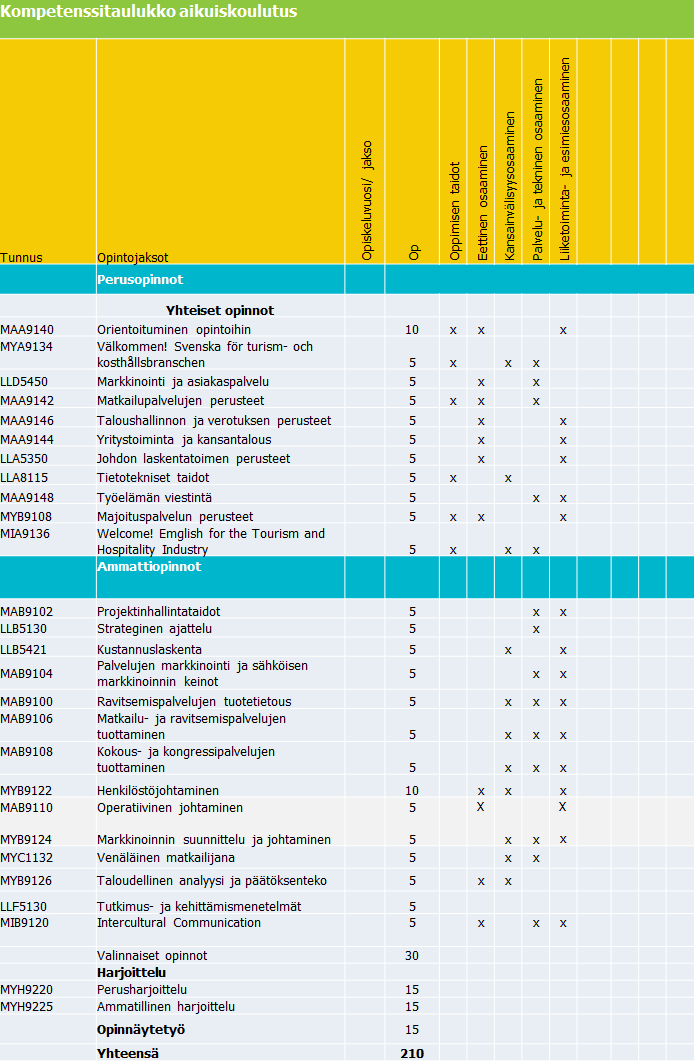 4 MAB9110 Operatiivinen johtaminen matkailu- ja ravitsemisalalla       5