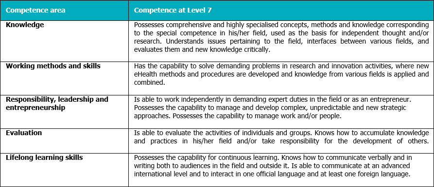 Master in degree programme in Digital Health is both European and National Qualification Framework (NQF) level 7.