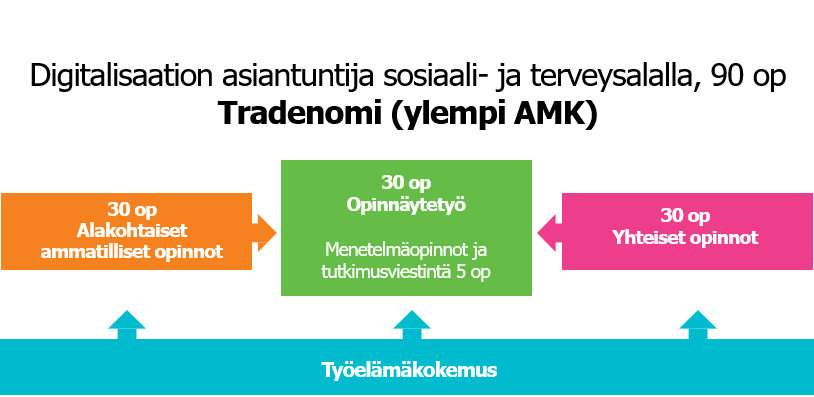 Digitalisaation asiantuntija sosiaali- ja terveysalalla ylempi ammattikorkeakoulututkinto (YAMK) on laajuudeltaan 90 op, tutkintonimike on Tradenomi (ylempi AMK). Tutkinto tuottaa työelämän edellyttämää laajaa ja syvällistä tietoa digitalisaation ja hyvinvointiteknologian näkökulmista ja antaa tarvittavat teoreettiset tiedot alan vaativissa asiantuntija- ja johtamistehtävissä toimimista varten. Ylempi ammattikorkeakoulututkinto antaa saman kelpoisuuden julkiseen virkaan kuin yliopistoissa ja muissa tiedekorkeakouluissa suoritettu ylempi korkeakoulututkinto. Digitalisaation asiantuntija sosiaali- ja terveysalalla (ylempi amk) on englanniksi Master of Business Administration (Amk-asetus 1129/2014).