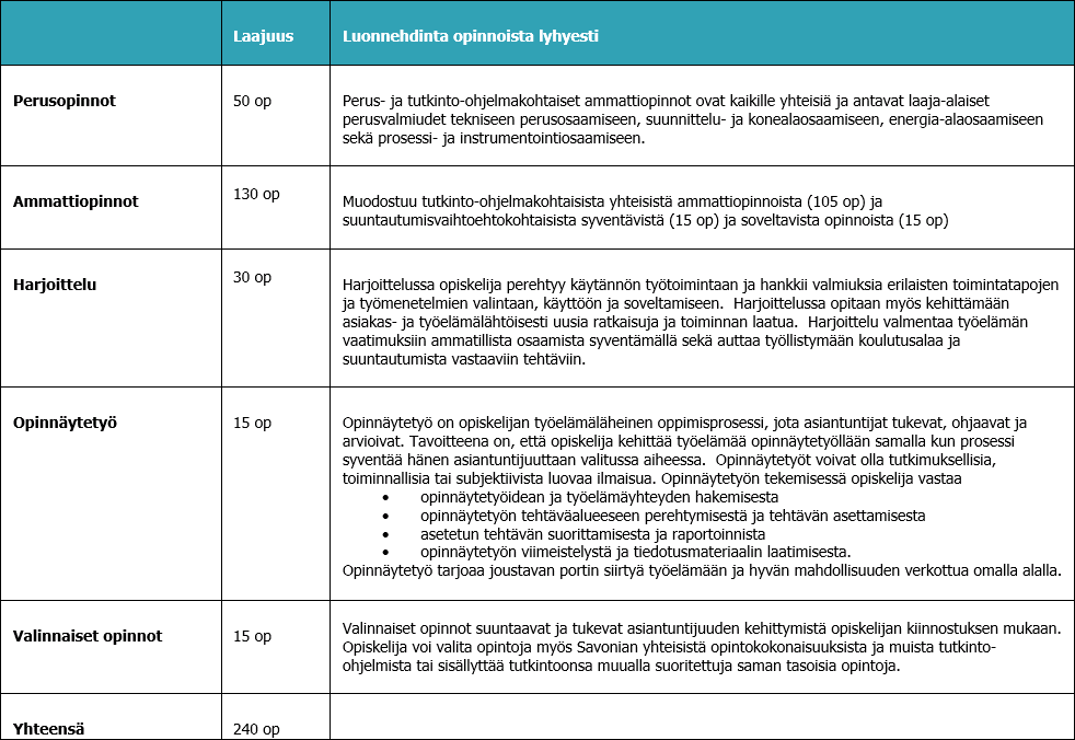 Energiatekniikan insinöörin opetussuunnitelma on laadittu niin, että