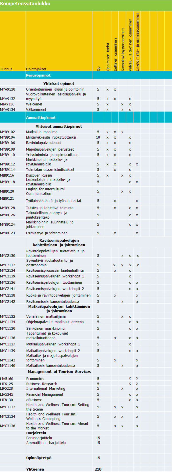4 MYC1142 Matkailu- ja majoituspalvelujen johtaminen         5