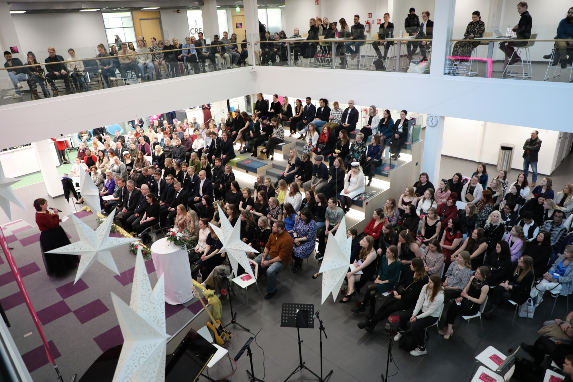 – Onnea meille! Tätäkään ammattikorkeakoulua ei olisi ilman opiskelijoita. Eikä Pohjois-Savo, tai koko Suomi näyttäisi samalta ilman ammattikorkeakouluopetusta. Kuopiolaisen Minna Canthin ehkä kuuluisin lausahdus on: ”Kaikkea muuta, kunhan ei puolikuollutta elämää”, se tarkoittaa kykyä oppia uutta ja kuvitella, miltä tulevaisuus näyttää, Ammattikorkeakoulujen rehtorineuvosto Arenen toiminnanjohtaja Ida Mieletyinen sanoi,
