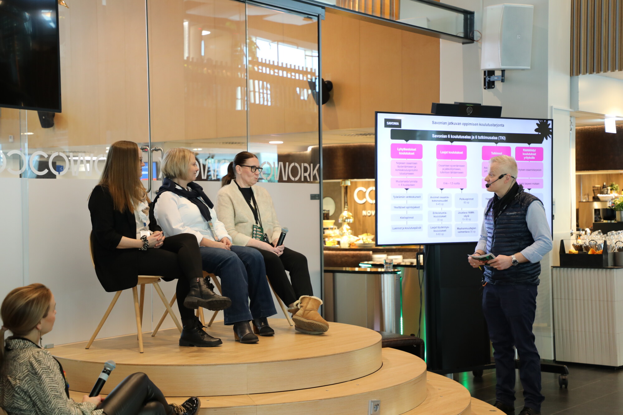 Novapoliksen CoWorkin lavalla oli erityisesti yrityksille suunnattua ohjelmaa. Aiheina oli muun muassa, kuinka yritykset voivat hyödyntää korkeakoulujen ja oppilaitosten palveluja, tki-infraa ja opiskelijoiden tuoretta osaamista. Paneelikeskustelussa puhuttiin myös jatkuvasta oppimisesta ja täydennyskoulutuksesta yritysten henkilöstön kehittämisessä. Savoniaa keskustelussa edustanut jatkuvan oppimisen johtaja Riitta Turjamaa muistutti, että koulutuksenjärjestäjät tulisi nähdä yksittäisten täydennyskoulutusten tarjoajan sijasta pitkäaikaisina kumppaneina, jotka yhteistyössä yrityksen kanssa voivat suunnitella henkilöstön osaamisen kehittämistä pitkällä aikajänteellä.